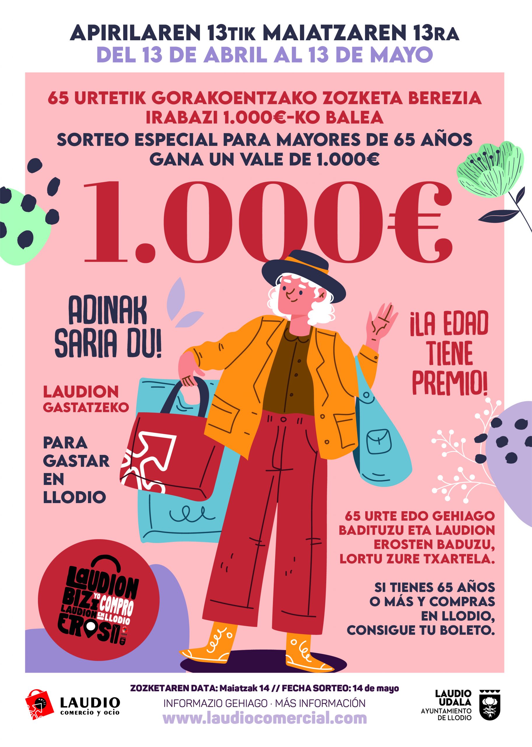 ¡La edad tiene premio! Y por ello, solamente podrán participar en el sorteo del vale de compra personas de 65 o más años y que realicen sus compras en los comercios de Llodio.
