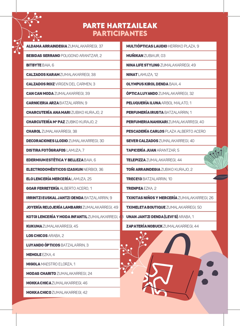 Simplemente hay que realizar compras de un mínimo de 10 € en cualquiera de los establecimientos participantes en la campaña del 13 de abril al 13 de mayo, rellenar con los datos personales el boleto que entregarán con la compra y depositarlo en el buzón del portal de APILL (Zumalakarregi, 33) o en la urna ubicada en el Ayuntamiento. Es importante guardar el ticket de la compra realizada porque habrá que presentarlo junto con el DNI en el caso de ser la persona ganadora del premio.