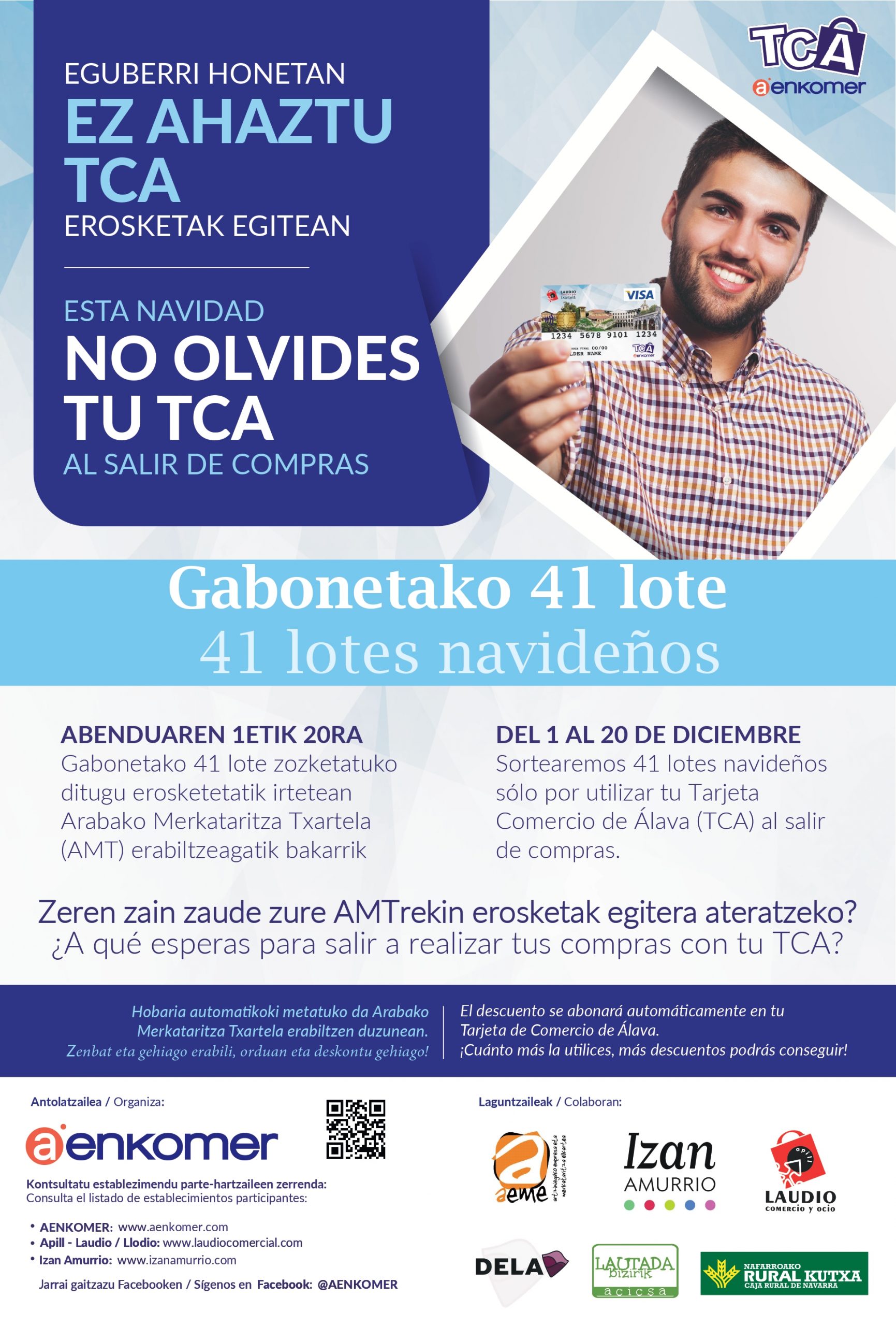 Este año también se sortearán de manera aleatoria lotes de Navidad del 1 al 20 de diciembre entre las compras que se realicen con esta tarjeta en los comercios de Llodio adheridos a la TCA-Laudio Txartela.